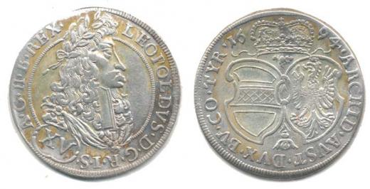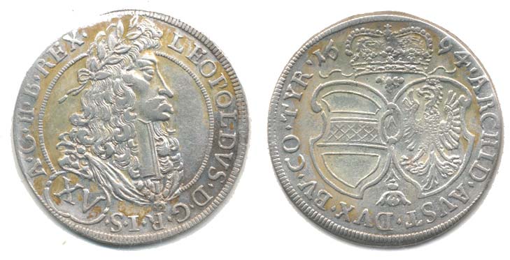 XV Krejcar 1694, Hall, Nech.2422, Höll.94.1.4_tém.