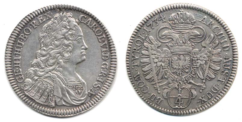 1/4 Tolar 1734, Hall, M-A.234, Her.587_tém.