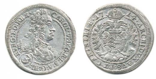 3 Krejcar 1714, Svatý Vít, Jung.164/13, Her.750_RR!