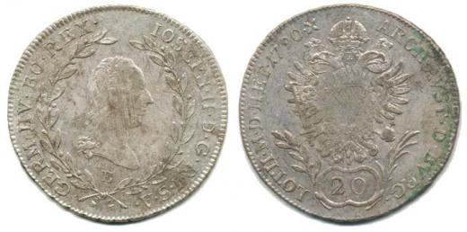 20 Krejcar 1790 E, Karlovský Bělehrad, P.31_dr.just. ve středu R!