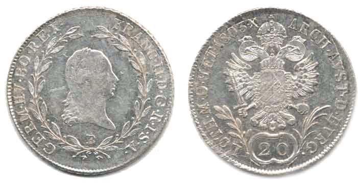 20 Krejcar 1803 B_dr.just.v rev. tém.