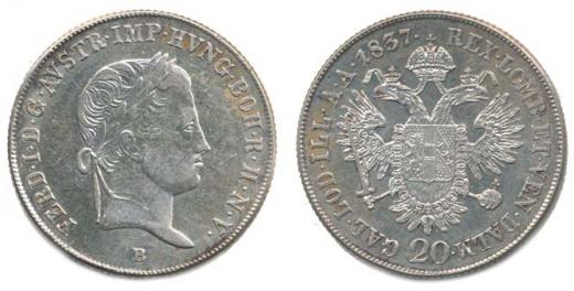 20 Krejcar 1837 B - se znakem_R. tém.