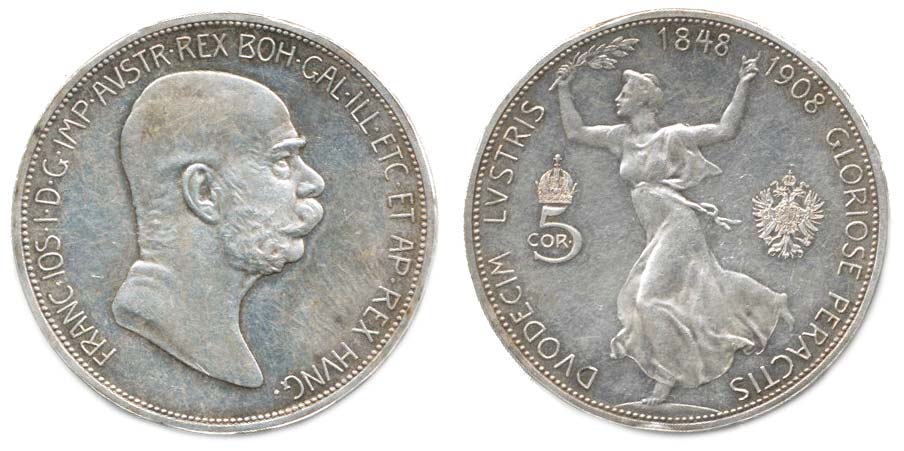 5 Koruna 1908 b.zn. - jubilejní