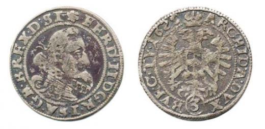 3 Krejcar 1625 SD, Ratiboř-Dyringer, mincm.zn. v poprsí MKČ.1124c_RR!