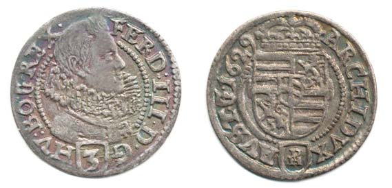 3 Krejcar 1629 PH, Petr Hema, Nech.113, MKČ.1335a