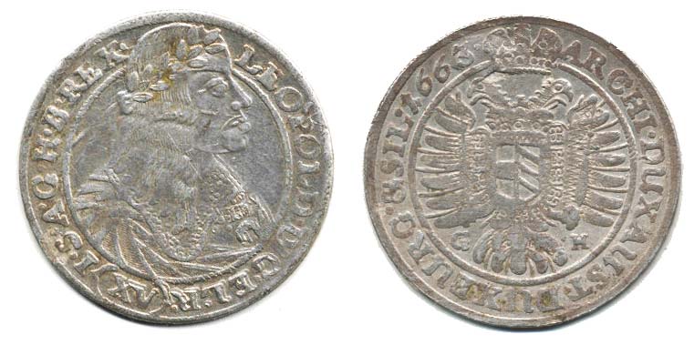 XV Krejcar 1663 G-H, Vratisl.-Hübner, Nech.677, Höll.63.2.1