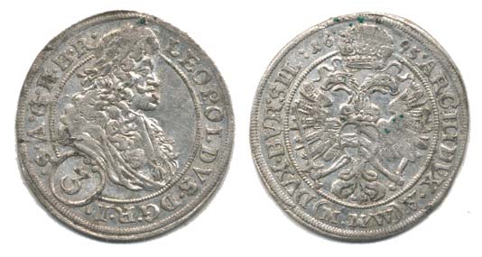 3 Krejcar 1695, Vratislav-Wackerl, Nech.747, MKČ.1630, ČS.881 opis končí: G.H.B.R.