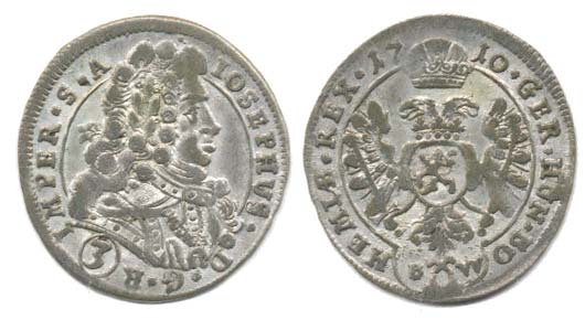 3 Krejcar 1710, K.Hora-Wohnsiedler, J.3a1, MKČ.1731, Her.212