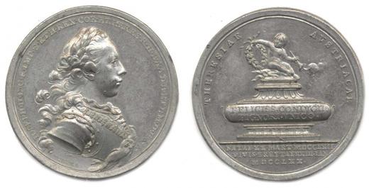 Widemann - medaile na úmrtí arcivévodkyně Terezie, dcery Josefa II. Portrét císaře zprava, opis / sarkofág, 3řádk.nápis, opis Sign., Sn 41 mm, Mo.2005, LG.XIV/246_R! tém.