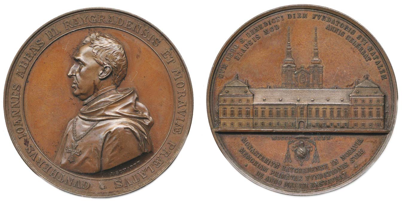 A.Scharff - opat Günther Johannes, 1880 Poprsí zleva, opis / budova kláštera, znak, opisy, Sign., Cu 54 mm, 69,76 g_R!