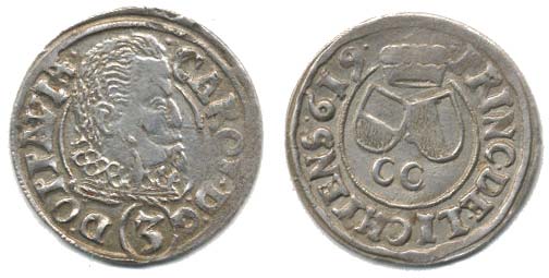 3 Krejcar 1619 CC (Cantor), SJ.35/10, Sa.365/157, Kop.6371