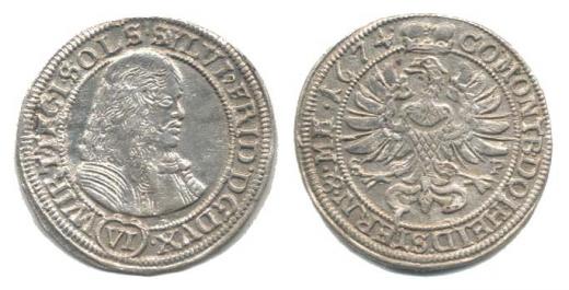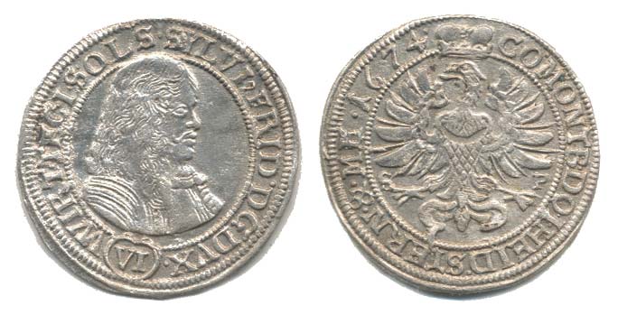 VI Krejcar 1674 SP, SJ.205/57, Kop.6215 - velký portrét a písmo