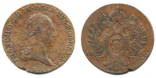 Cu 3 Krejcar 1800 G, minc.Nagybanya_dr.hr.raž.