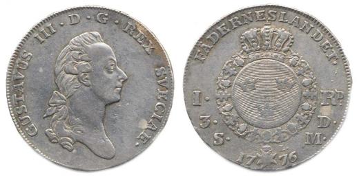 1 Rigsdaller 1776 O-L, Glück.45, Da.1735, KM.514_č.ned. v rev.