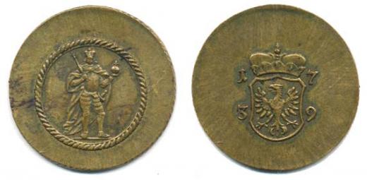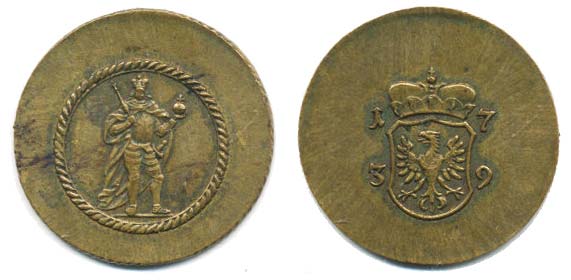 Dukátové závaží 1739, Mosaz 22 mm, 3,46 g, ČS.str. Fs.927, starý podložní lístek_RR!