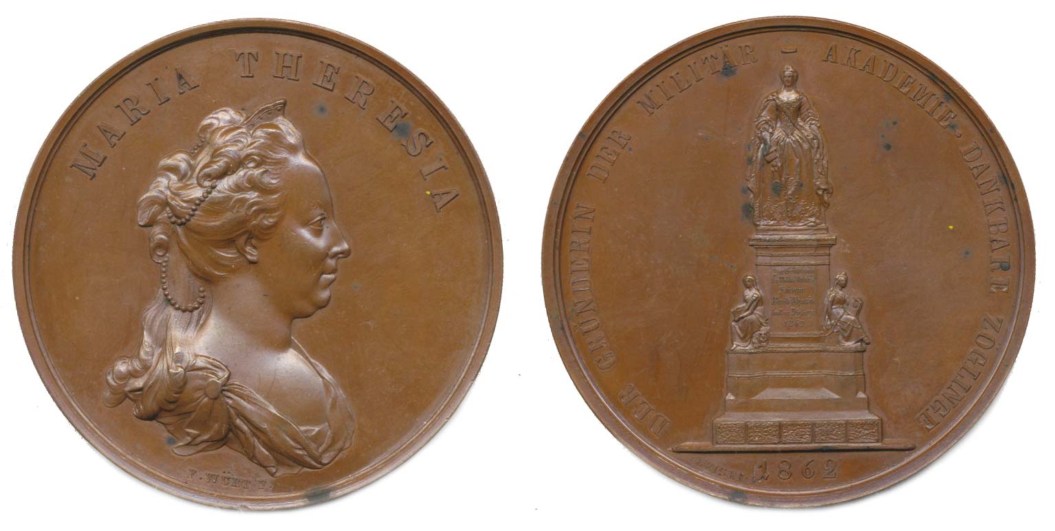 Würth, Leisek - medaile k 100.výročí vojenské akademie, 1862 Poprsí zprava, opis / p\mátník Marie Terezie, opis Bronz 60 mm, Ho.7151_R!