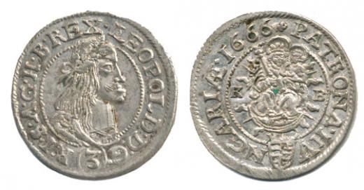 3 Krejcar 1666 KB, Nech.1209, Hus.1465, Her.1581_tém.
