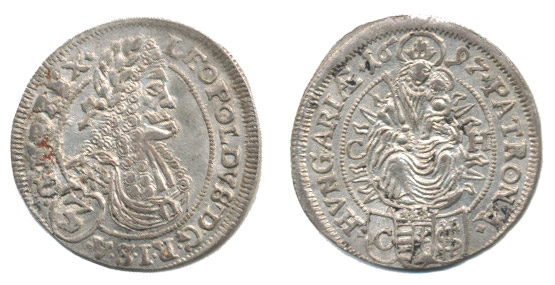 3 Krejcar 1697 CH, Bratislava-Hunger, Nech.1660, Hus.1478, Her.1633 _tém.