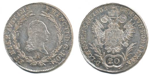 20 Krejcar 1806 A - s říšskou korunou a tituly_tém.