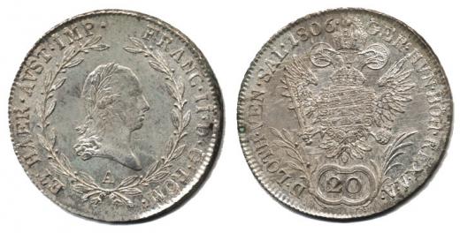 20 Krejcar 1806 A - s říšskou korunou a tituly_tém.