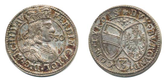 3 Krejcar 1650, Hall, M-A.148 (tab.26/26), chyboražba v opisu: TYROIS_R!