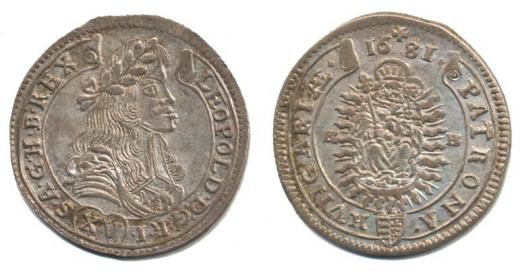XV Krejcar 1681 KB, Nech.1164, Husz.1425, Höll.81.1.1b_tém.