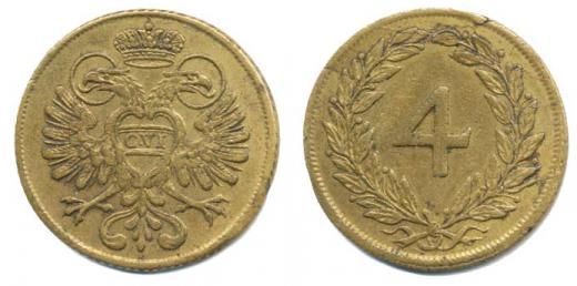 4 Krejcar b.l., Pešť - Invalidovna, Mosaz, 2.vydání, Herinek.nezná _RRR!