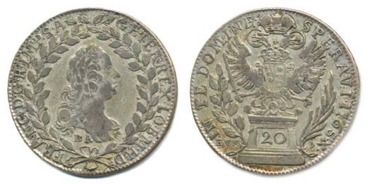 20 Krejcar 1765 BA/EvM-D ( posmrtný - 1766 ), N.47, Her.328 _dr.rys. v av.