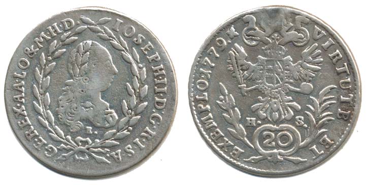 20 Krejcar 1779 E/H-S, Karlovský Bělehrad, P.9_st.po o.
