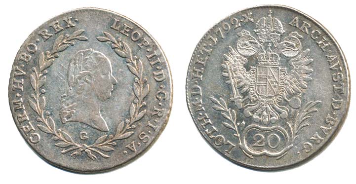 20 Krejcar 1792 G, Velká Baňa, P.16