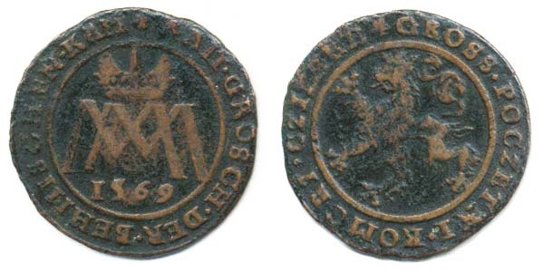 Početní groš 1569, K.Hora-Šatný, Mrš.17, J.16d, Don.1376