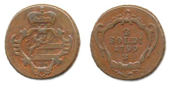 Cu 2 Soldi 1799 S - pro Gorici a Gradišku, P.56