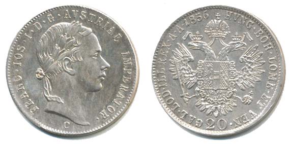 20 Krejcar 1856 C - poslední ražba pražské mincovny