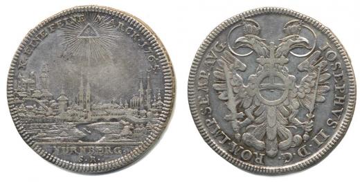 Tolar 1765 SR - pohled na město / znak, s tit.Josef a II. Sch.67, Cr.81, KM.350