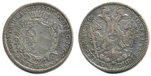 Tolar 1767 SR - oválný znak města / dvouhlavý orel, s tit.Josefa II. Cr.82a, KM359, Dav.2498, Sch.77