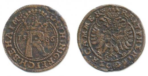 Početní peníz 1586, České Budějovice - Mattighofer Mrš.97a, Don.1849_R!