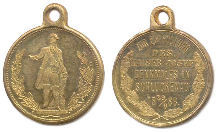 Šluknov (Schluckenau) - na odhalení pomníku 29.8.1886 Stojící císař ve věnci / 6řádk.nápis ve věnci, Nesign., Pozlac.bronz 30 mm, 11,17 g_orig.raž.ouško