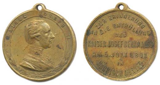 Úsov (Aussee) - upomínka na odhalení pomníku 5.7.1891 Poprsí císaře zprava, opis / 7řádk.nápis Nesign., Bronz 30 mm, 10,65 g_orig.raž.ouško