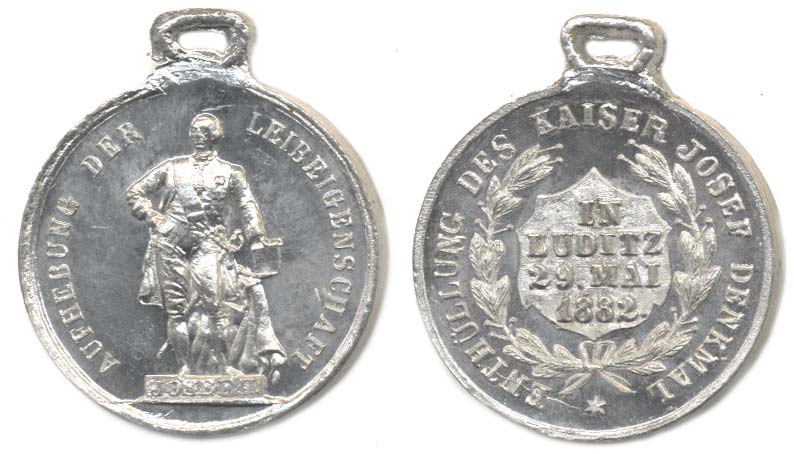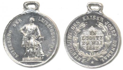 Žlutice (Luditz) - na zrušení nevolnictví a odhalení pomníku 29.5.1882 Stojící císař čelně, opis / 4řádk.nápis ve věnci, opis Nesign., Sn 30 mm, 11,52 g_orig.raž.ouško