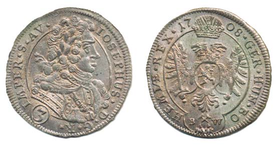 3 Krejcar 1708, K.Hora-Wohnsiedler, J.3b, MKČ.1731, Do.2629_tém.