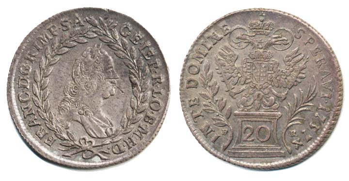 20 Krejcar 1757 P-R, Praha-Schaumberger, N.8_dr.škr.v av.