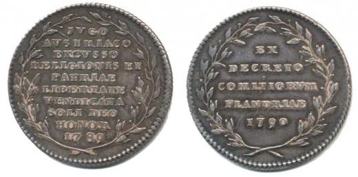 Žeton na nezávislost Flander 1789/1790#Ag 10řádk.nápis ve věnci / 5řádk.nápis ve věnci Ag 33 mm, 11,83 g, Mo.2196, Ho.3178, LG.XIV/1067, We.8861_R!