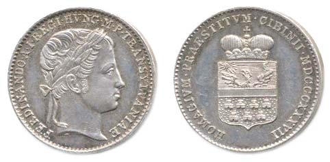 Menší peníz na holdování v Sedmihradsku, 1837 Portrét, opis / korunovaný znak, opis, Nesign. Ag 18 mm, 3.3 g, Nov.XVIII/E-3b, P.4/7, Mo.2570_tém.
