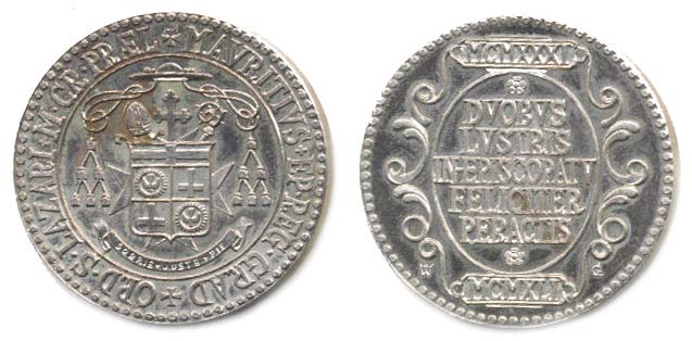 Na 10.výročí intronizace, jeton 1941 Znak s kardinálským kloboukem, opis / nápis v ozdobné kartuši, Sign.WG, Nepunc., Ag 24 mm, 8,21 g