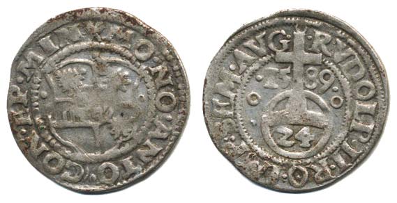 Groš (1/24 Tolaru) 1589 s titulem Rudolfa II., Sa.3221/1709_č.ned.