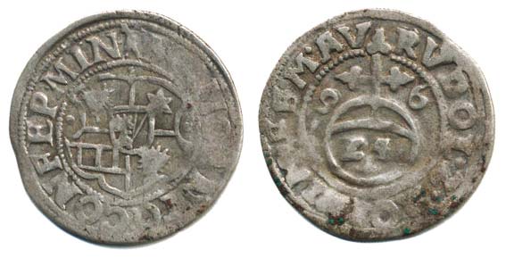 Groš (1/24 Tolaru) 1596 s titulem Rudolfa II., Sa.3228/1709_č.ned.
