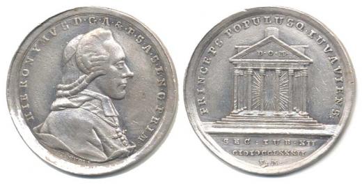 Medaile na 1200.výročí kláštera, 1782 Portrét zprava, opis / pohled na chrám, 3řádk.nápis v úseči, opis Sign.F.Matzenkopf, Ag 33 mm, 12,45 g