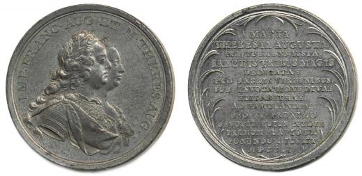 M.Donner - medaile na položení základního kamene ženského kláštera Alžbětinek v Brně v r.1751, dvojportrét zprava, opis / 14řádk.nápis, Nesign., Sn 48 mm, 34,07 g, SD.104, Rauch.86/2125 _R! tém.