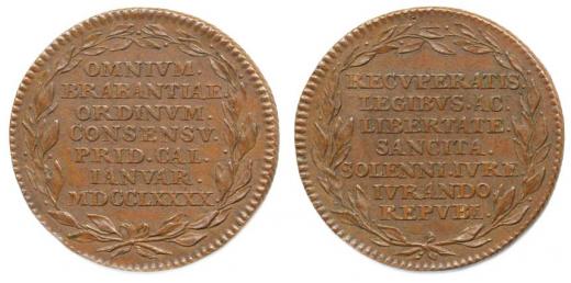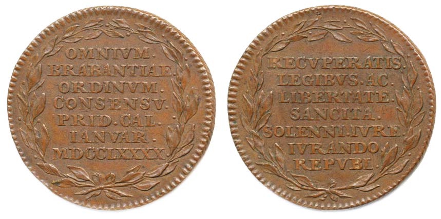 Žeton na nezávislost Brabant 1790#Ag 7řádk.nápis ve věnci / 7řádk.nápis ve věnci Ag 33 mm, 12,45 g, Mo.2195, LG.XIV/1066 (Br)_R!