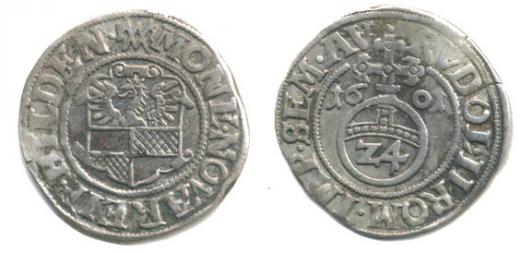 Groš (1/24 Tolaru) 1601 s tit.Rudolfa II., Sa.4011/2145_č.ned.